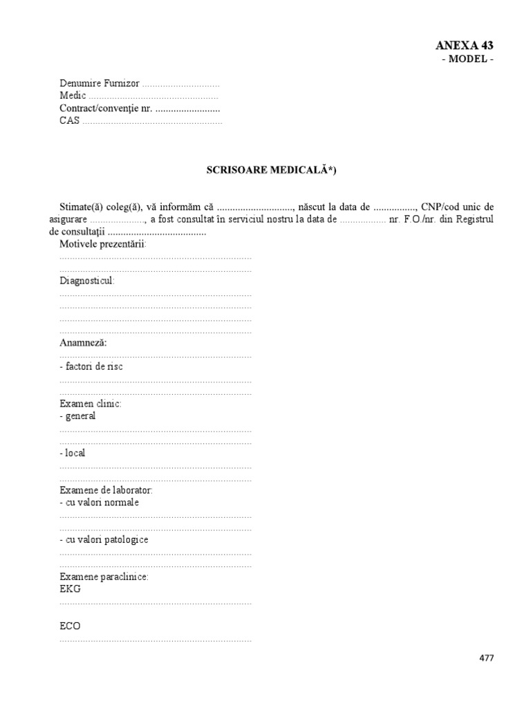 Scrisoare medicala anexa 43 model nou. Obţinerea adeverinţei de asigurat. J40 21864 1994 c u i. Important e că s a schimbat şi asta i suficient ca să tulbure apele deloc limpezi. 479 s a eliberat concediu medical la externare consultaţia din ambulatoriu caz în care se va înscrie seria şi numărul acestuia nu s a eliberat concediu medical la externare deoarece nu a fost necesar.