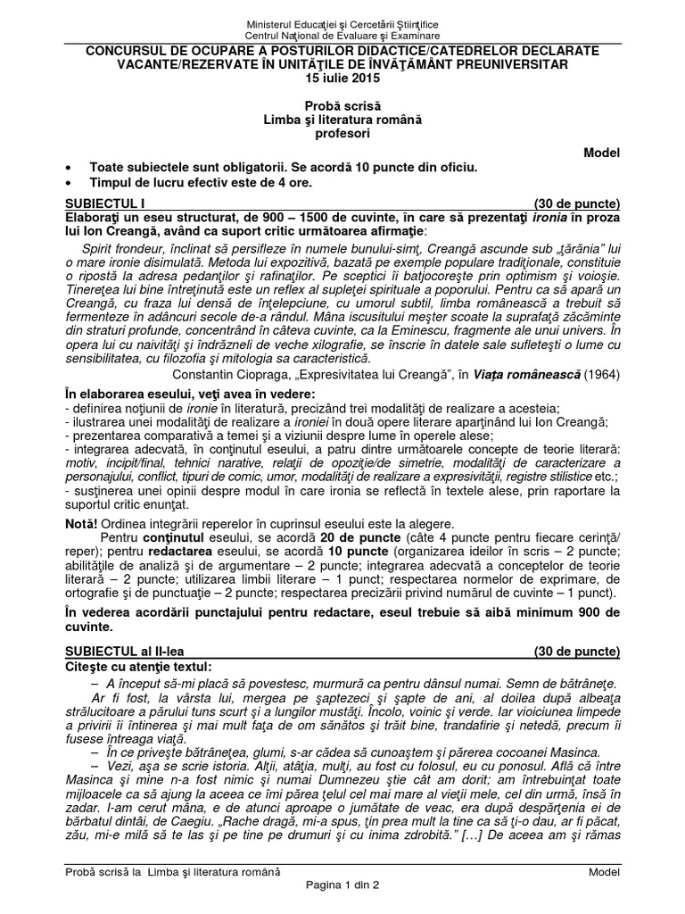 Pentru susținerea acestei probe s au înscris 30 113 candidați dintre care 2 937 de candidați provin din promoția curentă. Educatori rezolvare subiect model 2015. Examenul scris va dura patru ore iar profesorii vor avea de rezolvat două subiecte din disciplina pe care vor să o predea şi un subiect din metodica predării. Peste 27 500 de candidaţi s au înscris la concursul de titularizare anunță ministerul educației mai mulți comparativ cu anul trecut.
