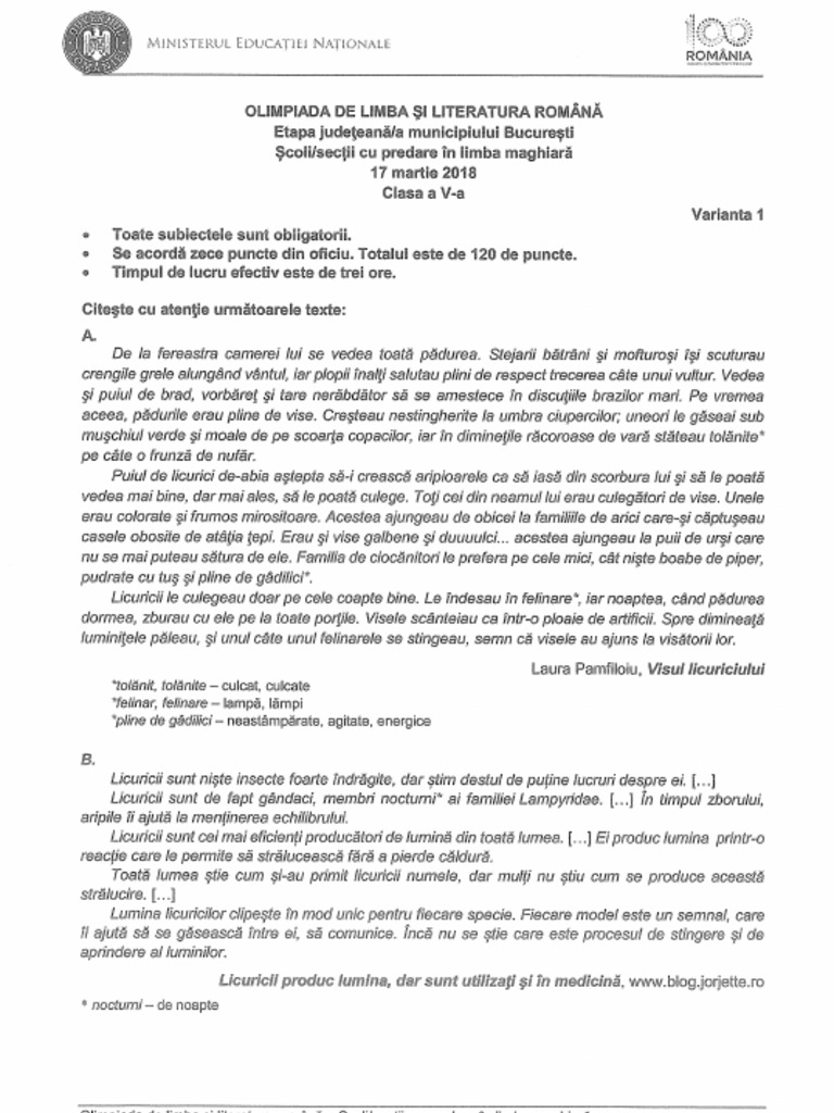 Subiecte si bareme olm 2018. Anunt testare excelenta romana. Art 7 1 l a etapa națională se califică elevii care au obținut cel puțin 90 de puncte la etapa județeană. Olimpiada de limba şi literatura română etapa judeţeană 17 03 2018 categorii.